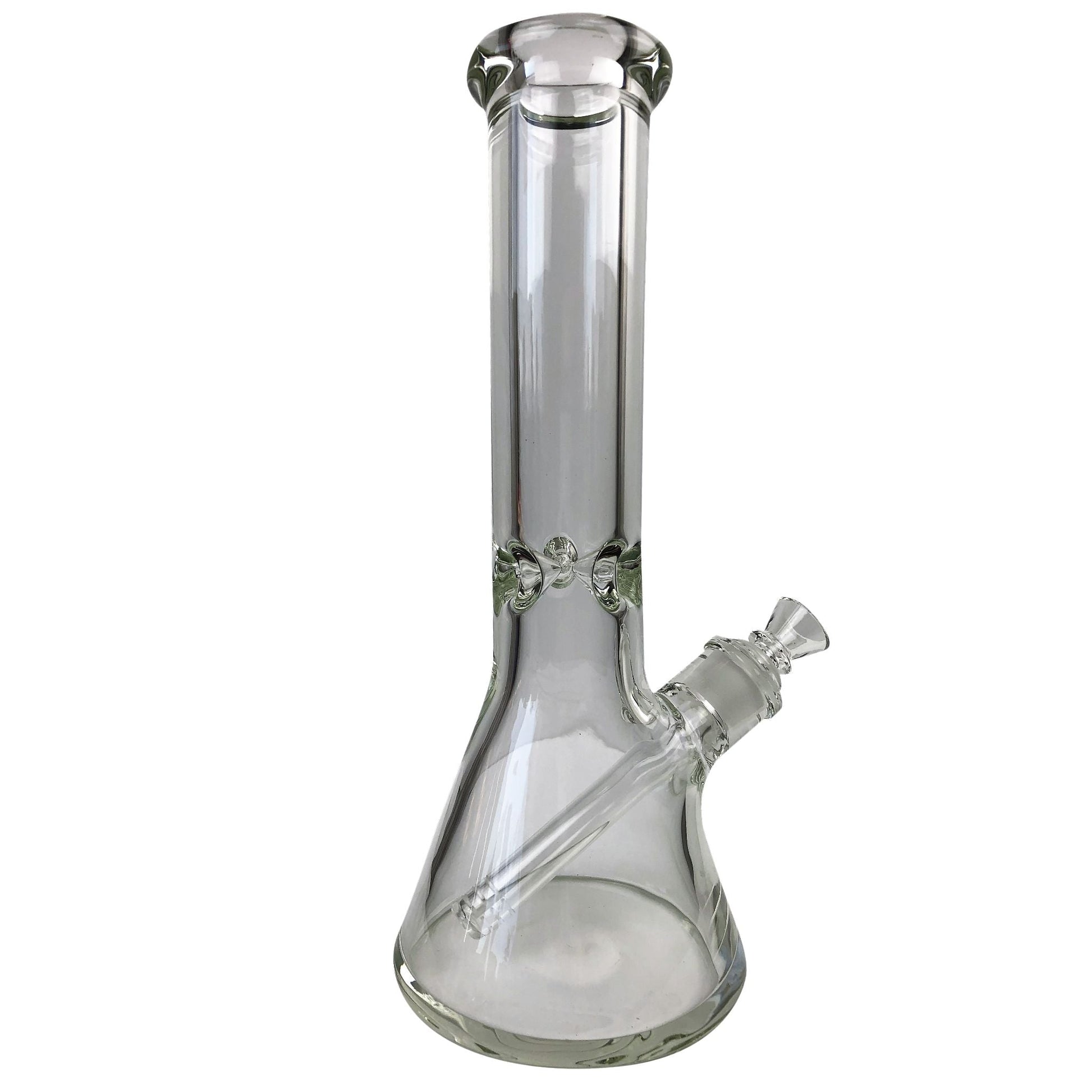 The CaliConnected 12" Super Thick Beaker Bong is a durable and high-quality smoking accessory made from 9mm thick borosilicate glass, making it nearly twice as thick as standard bongs and ideal for those who tend to knock their bongs over. Its classic design includes a clear glass body, a diffuser downstem for filtration, a beaker base for stability, and an ice catcher that can hold multiple ice cubes for cooling your smoke, ensuring a smooth smoking experience. The removable diffuser downstem filters the smoke before it reaches the ice catcher, enhancing the overall functionality of the bong.