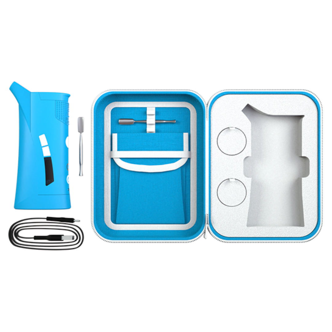 Inside of the Roam’s comfortable housing is the glass hydro-tube water filtration system. The hydro-tube serves as the “vapor path” for the Roam and is attached directly to the mouthpiece. In keeping the hydro-tube so close to the mouthpiece, Grenco Science ensured that you’d get fresh draws with each pull since your vapor is going directly from the chamber to your lips with no unnecessary space in between. Each Cookies G Pen Roam complete kit comes standard within a Cookies blue hemp travel case with room for two concentrates jars and a pocket for accessories. This pocket is perfect for traveling with the included micro-USB-to-USB charging cable, loading tool, and cleaning swabs.